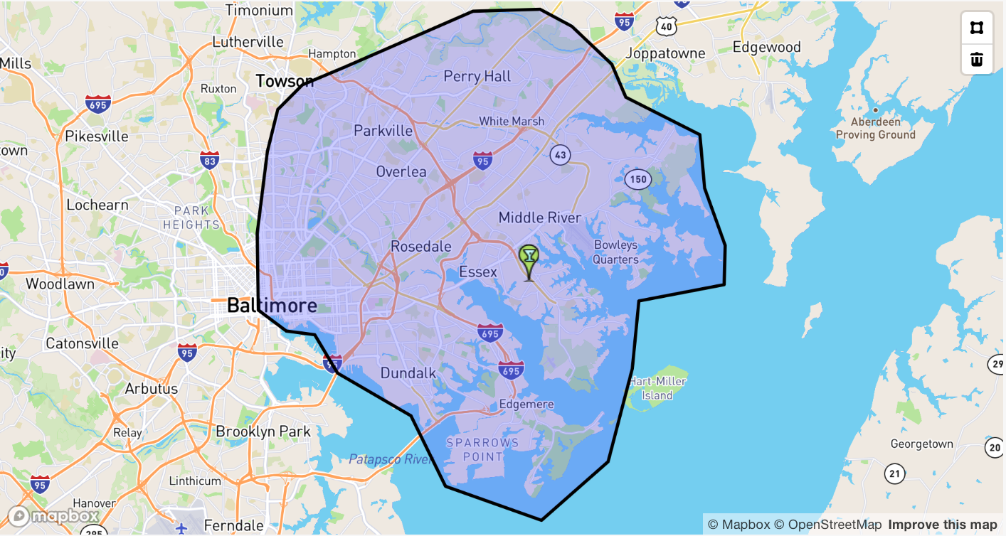 - For catering orders, this delivery radius allows for a maximum of 25 miles. To view the catering delivery radius map, click the following link and scroll to the bottom of the page: Catering Delivery Map